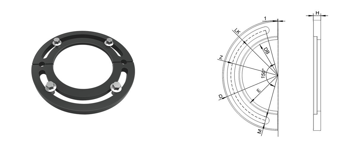 • หน้าแปลนคงที่ใช้สำหรับการติดตั้งประเภท MESA (LQTMS) บนตารางเครื่อง